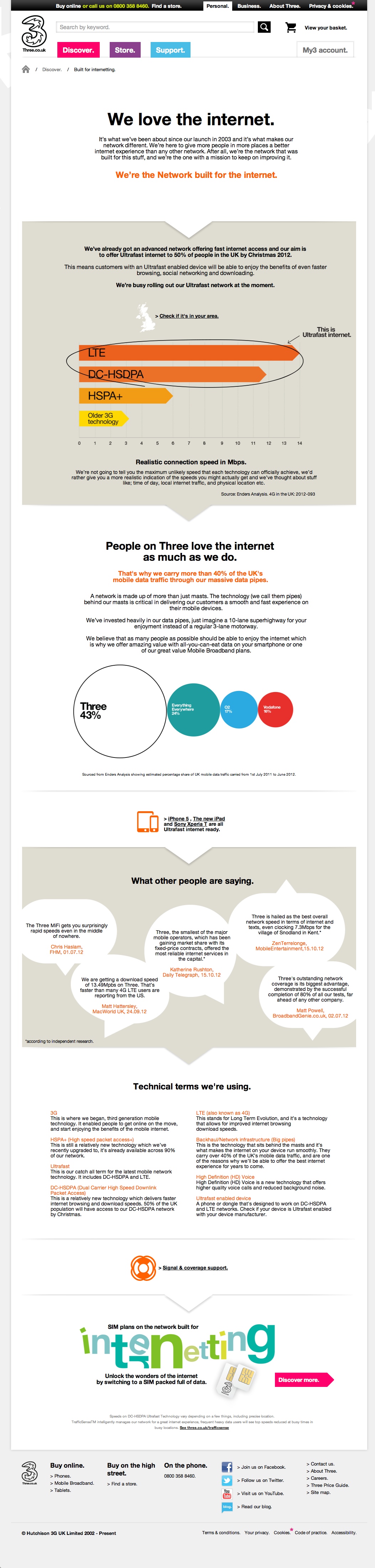 Three very quickly became one of my favourite places to work, mainly due to the variety of projects I was able to get involved in. This included writing video and radio scripts, web content, in-store brochures, retail posters, DR, billboards, text messages and internal comms. Oh, and I got to interview a few celebrities about their mobile phone habits too.